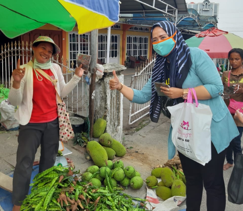 "Pakai masker ya pak, buk berjualannya..!! ini penting sebagai pecegah awal dari virus Corona" Ucap Salah seorang Barisan Relawan Istiqomah Ayu suci Sabri saat membagi masker kepada pedagang.