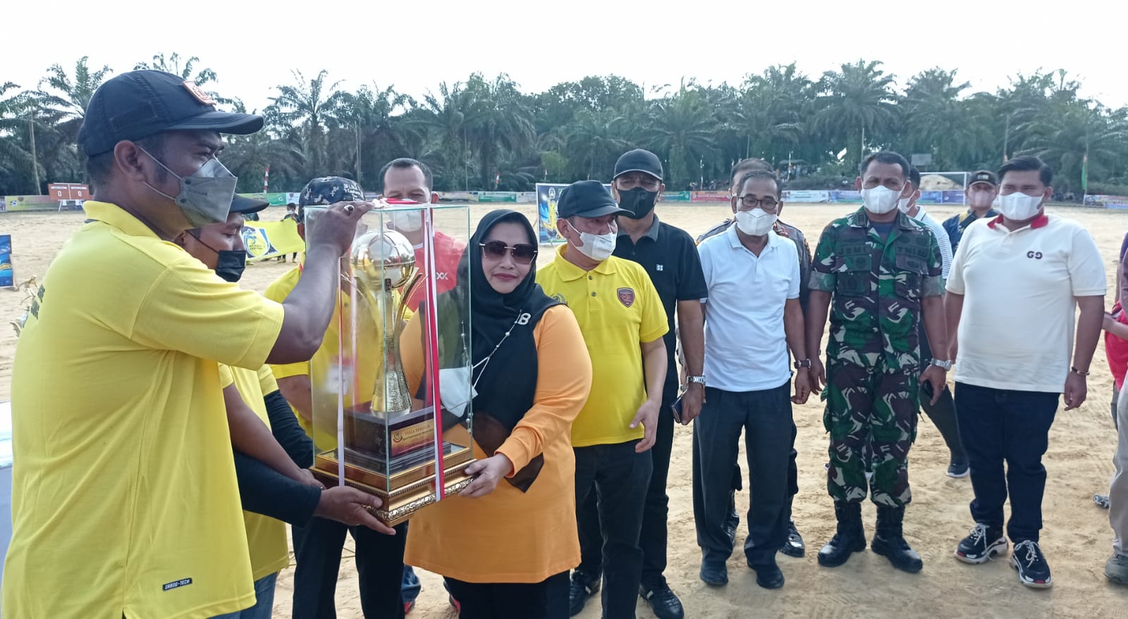 "kami melihat bahwa turnamen ini, merupakan kejuaraan yang bernilai penting dan strategis, karena dapat kita jadikan sebagai salah satu indikator, bahwa masih berjalannya pembinaan dan pelatihan cabang olahraga sepakbola disetiap desa, khususnya dalam wilayah Kecamatan Pinggir dan sekitarnya," Sebut Kasmarni.