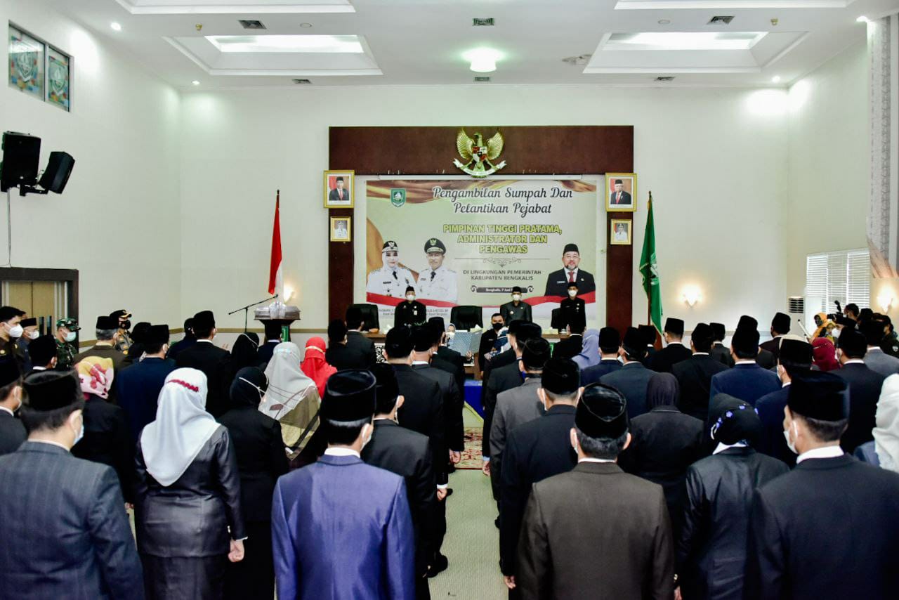 Nusaperdana.com, Bengkalis – Bupati Bengkalis Kasmarni mengambil sumpah dan Pelantikan 68 orang Pejabat Pimpinan Tinggi Pratama, Pejabat Administrator dan Pengawas Di Lingkup Pemerintah Kabupaten Bengkalis, Senin (07/06/ 2021) bertempat di Dang Merdu Lantai IV Kantor Bupati Bengkalis.