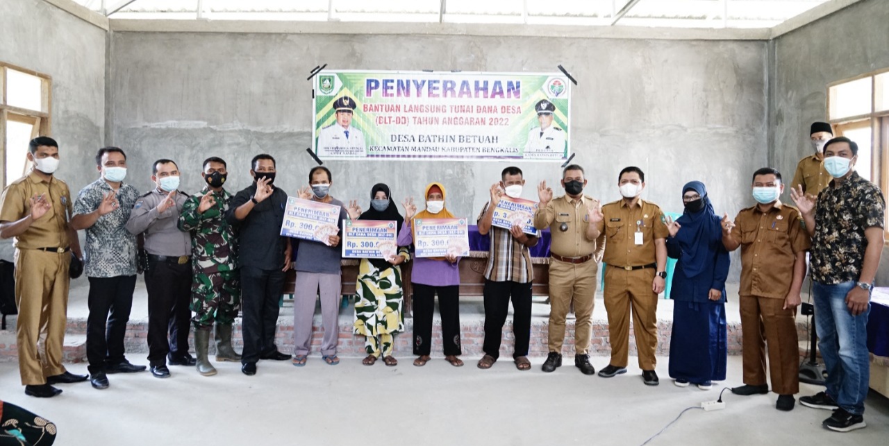 "Bantuan langsung tunai melalui dana desa (BLT-DD) ini merupakan salah satu bantuan yang diberikan dalam upaya menekan dampak pandemi covid-19 terutama bagi warga kurang mampu dan terdampak Covid-19," ucap Sekcam Mandau Yoan Dema saat menyerahkan bantuan secara simbolis.