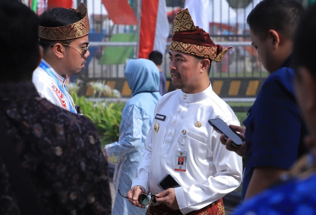 Dalam upacara tersebut, Ginda Burnama hadir Bersama Pj Walikota Pekanbaru., Risnandar Mahiwa. Keduanya terlihat serasi dengan busana Melayu pakaian teluk belanga kombinasi putih.