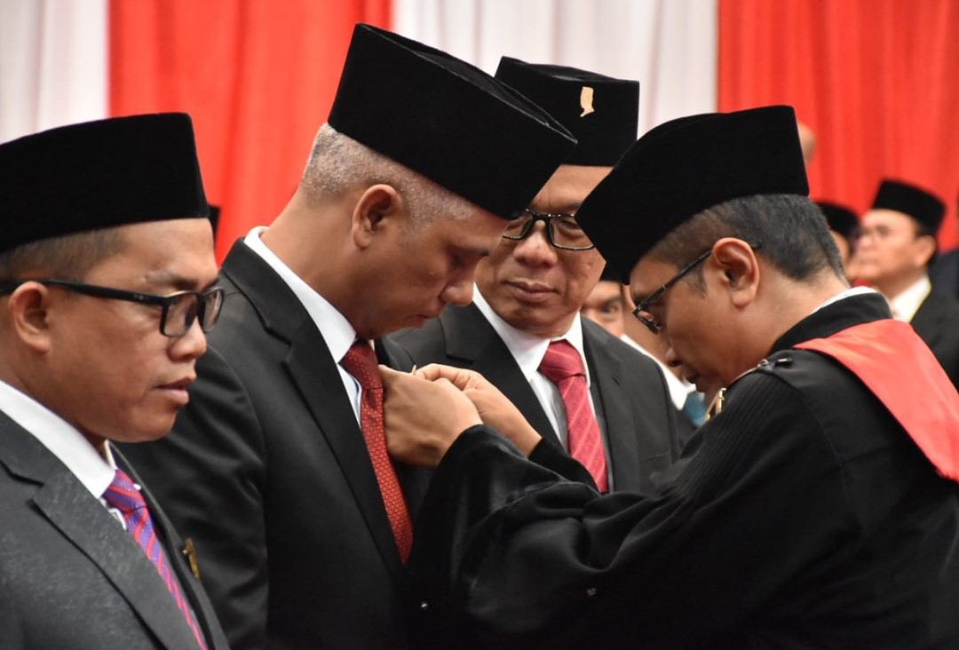 PEKANBARU - Jumat (6/9/2024) menjadi hari bersejarah bagi Kota Pekanbaru. Ketua Pengadilan Negeri Pekanbaru, Raden Heru Kuntodewo, SH, MH, secara resmi melantik dan mengambil sumpah 50 Anggota DPRD Pekanbaru terpilih untuk masa jabatan 2024-2029. Pelantikan ini berlangsung dalam suasana khidmat di Rapat Paripurna Istimewa yang digelar di ruang rapat Paripurna Gedung DPRD Kota Pekanbaru.