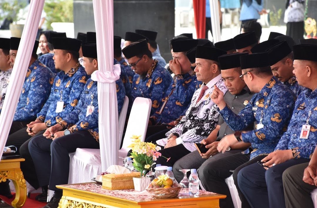 Upacara ini dipimpin langsung oleh Penjabat (Pj) Walikota Pekanbaru, Risnandar Mahiwa, S.STP, M.Si, yang dalam sambutannya menekankan pentingnya perlindungan terhadap profesi guru. “Guru adalah aparat penting yang berperan dalam mencerdaskan kehidupan bangsa. Kami berharap agar tidak ada lagi kriminalisasi terhadap guru, karena tugas mereka sangat mulia dalam membangun generasi masa depan,” ujar Risnandar.