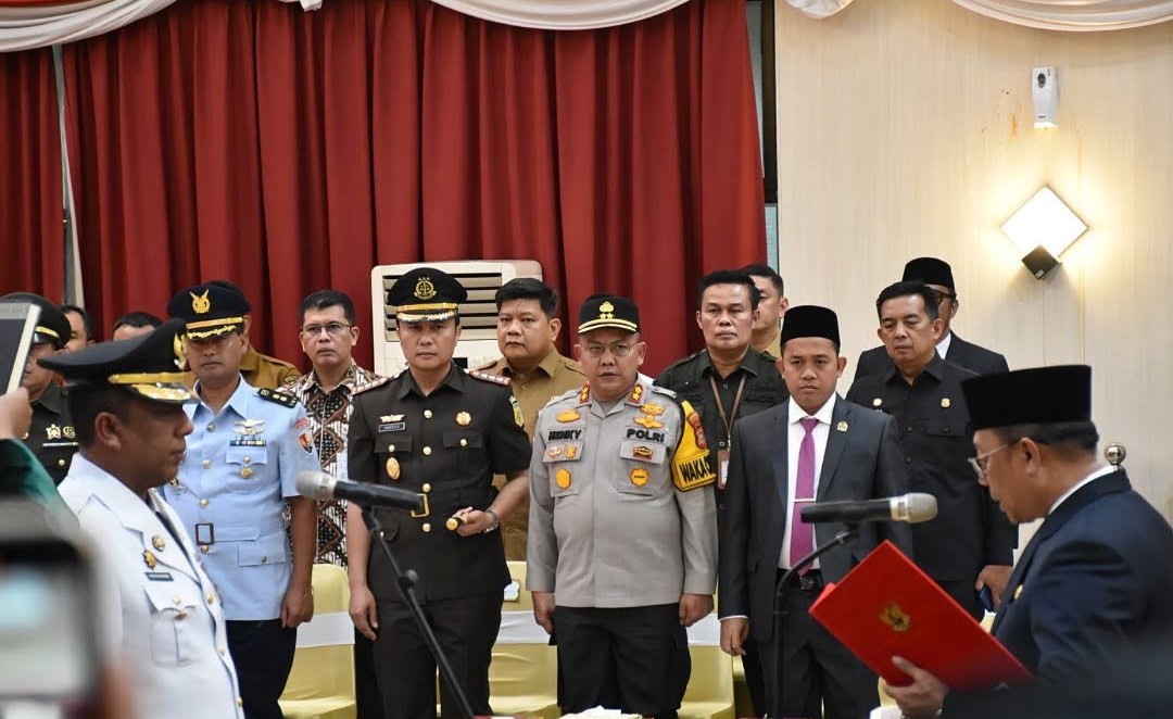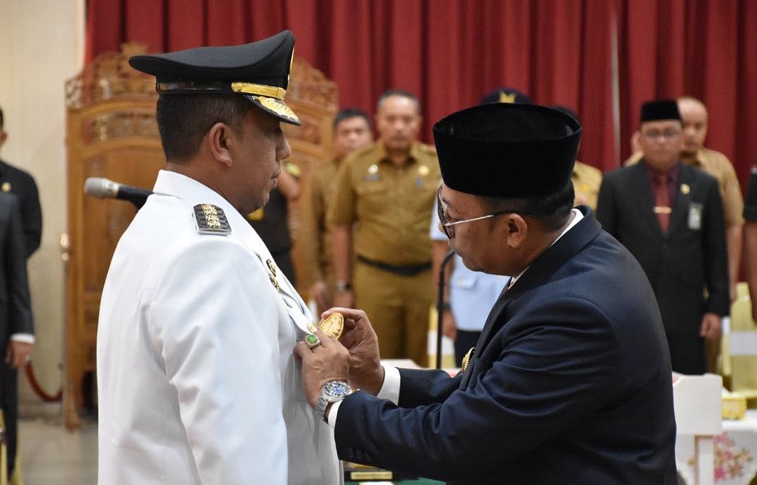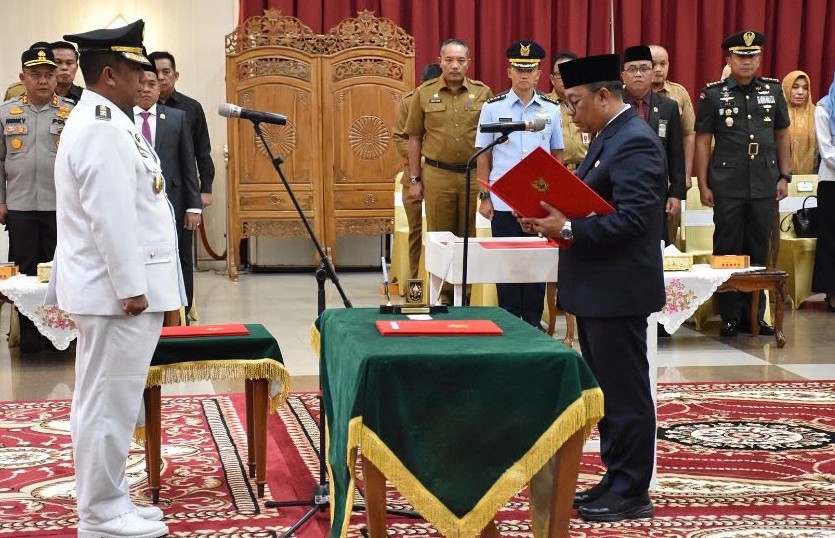 PEKANBARU - Suasana khidmat menyelimuti Balai Serindit, Gedung Daerah Riau, pada Selasa (3/12/2024) sore. Pj Gubernur Riau, Rahman Hadi, secara resmi melantik Roni Rakhmat sebagai Penjabat (Pj) Walikota Pekanbaru. Acara yang menandai tonggak baru bagi kepemimpinan Kota Pekanbaru ini turut dihadiri oleh sejumlah pejabat penting, termasuk Ketua DPRD Kota Pekanbaru Muhammad Isa Lahamid, ST., MH.