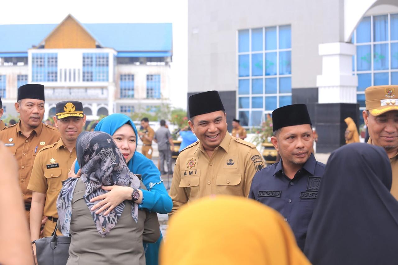 Momen upacara gabungan ini juga momen silaturahmi Wali Kota Pekanbaru dengan seluruh ASN dan THL. Mereka saling bersalaman setelah momen Idul Fitri 1446 H. (Galeri Foto)