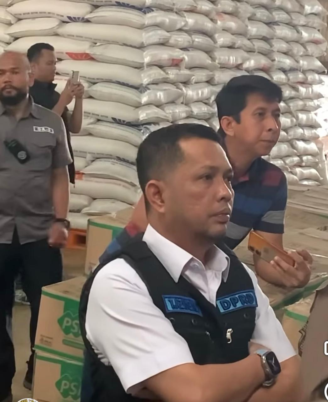 PEKANBARU - Wakil Ketua Dewan Perwakilan Rakyat Daerah (DPRD) Pekanbaru Tengku Azwendi Fajri ikut serta dalam pengecekan ketersediaan beras di gudang Bulog, Jumat (14/3).