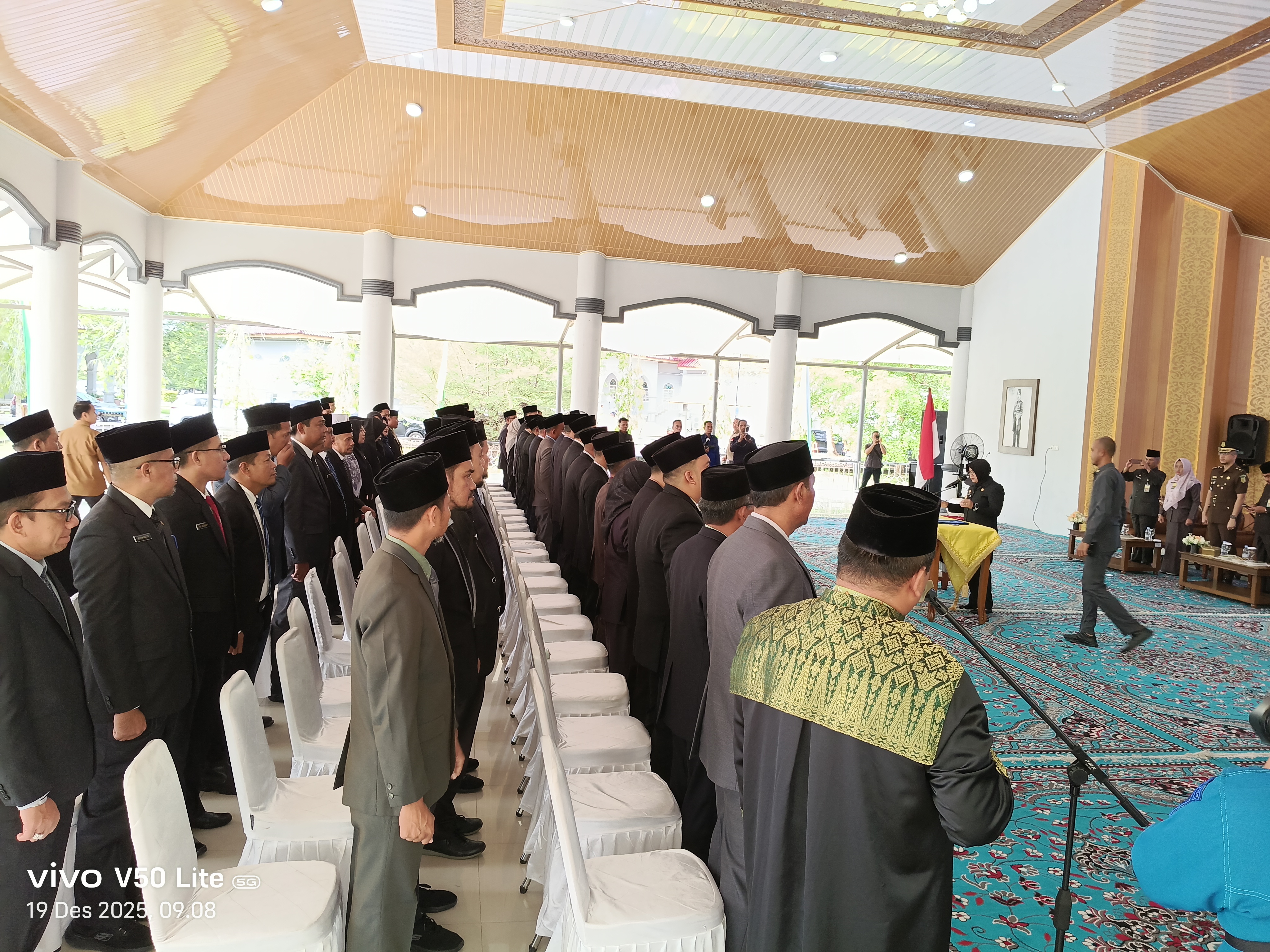 Nusaperdana.com, Siak – Bupati Siak, Hj. Afni Zulkifli, S.Pd., M.Si secara resmi melantik dan mengambil sumpah jabatan Pejabat Pimpinan Tinggi Pratama, Pejabat Administrator, Pejabat Pengawas, serta Pejabat Fungsional di lingkungan Pemerintah Kabupaten Siak, Jumat (19/12/2025).